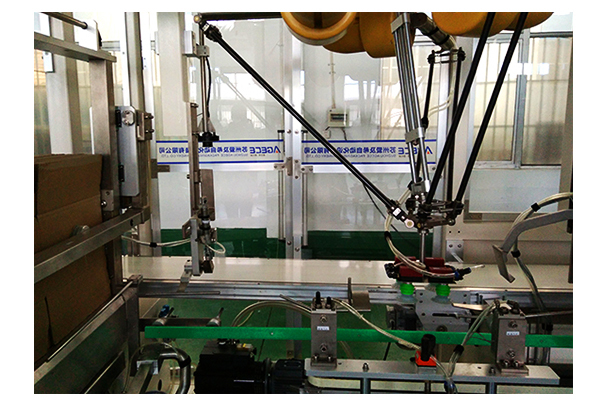 • 此款機(jī)型將開箱、視覺、Delta機(jī)器人抓取入箱、封箱集于一體,提高了裝箱效率,結(jié)構(gòu)緊湊,占用空間小。